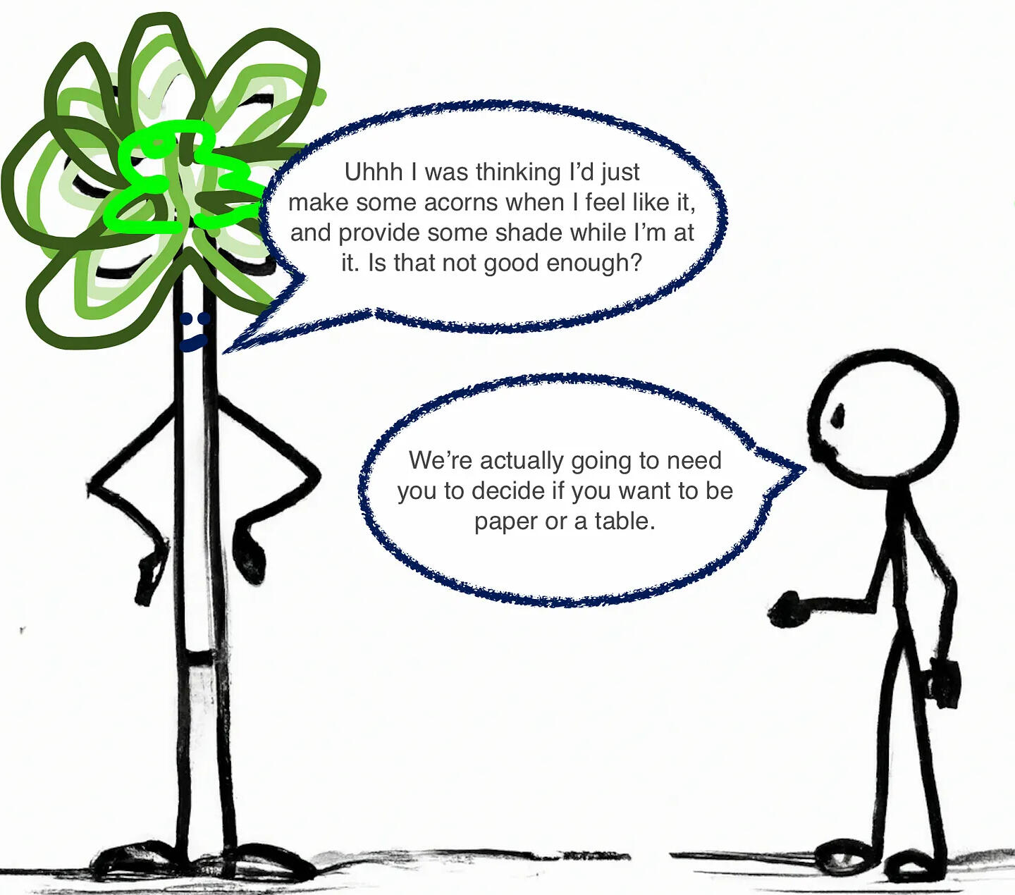 Five years later, this oak tree is gonna feel like shit. It’s going to think if it could just get 45 more years, maybe it could finally learn how to grow avocados.